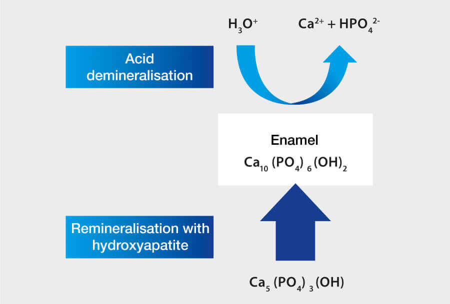 The loss of hard tooth substance is not a major issue at a young age. However, the dissolution of enamel increases with age, which means that around a quarter of adults suffer from hypersensitive teeth due to a loss of hard tooth substance. The term erosion is often used in this context. However, this must be differentiated more precisely: Erosion describes the wear of enamel caused by acid with no bacterial involvement. Attrition is the wear of enamel caused by tooth-on-tooth contact (e.g. bruxism). Abrasion is the "grinding" of enamel from cleaning the teeth or using an unsuitable toothpaste. These enamel defects frequently result in hypersensitive teeth. The tooth can be preserved from this dissolution by means of a protective layer, which can counteract hypersensitive teeth.