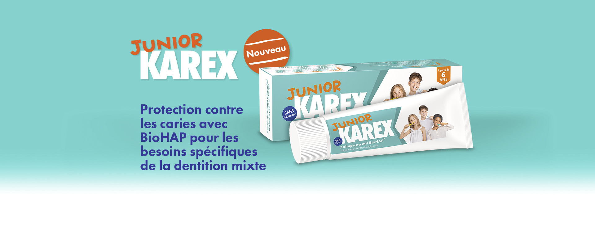 Malgré l'amélioration constante de l'hygiène bucco-dentaire au cours des dernières décennies, presque tout le monde est confronté au moins une fois dans sa vie à des caries. KAREX lutte contre ce problème de manière innovante grâce à l'ingrédient actif BioHAP. KAREX renonce complètement au fluorure.